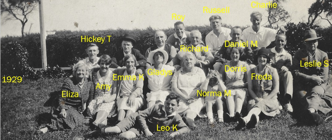 • I cant see the big blond fella up the back as Russell, this is a report of him from the Victorian Police Gazette dated August 17 1911″ Deserters of wives and children”Charged with deserting his illegitimate child at Shepparton , description, bakers driver, about 18 years of age, 5 feet 3 or 4 inches, medium build, medium complexion, brown hair, round features, inclined to be small, no hair on face. He would have been 42 if the picnic photo was taken in 1933.