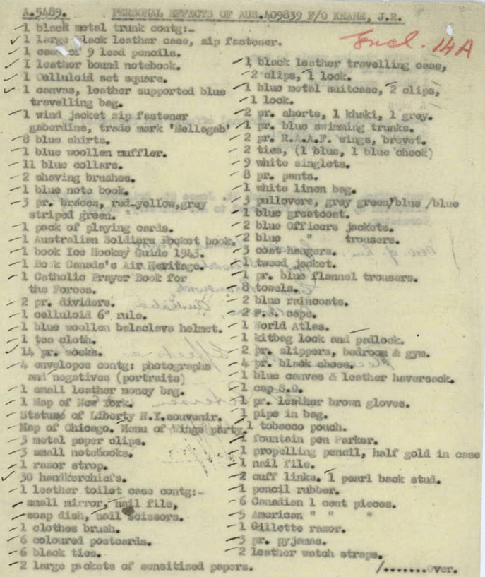 This is a list of Jack Keane’s belongings as returned home after his death in WW2. We don’t know what happened to them.